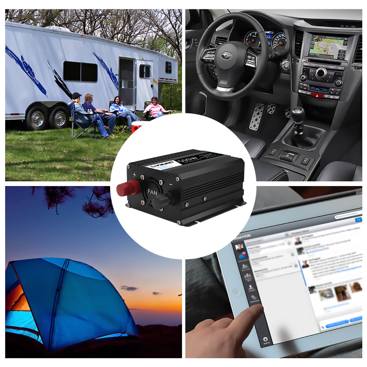 Инвертор Lvyuan оснащен двумя USB-портами и интерфейсом DC, что позволяет вам одновременно подключать несколько устройств.