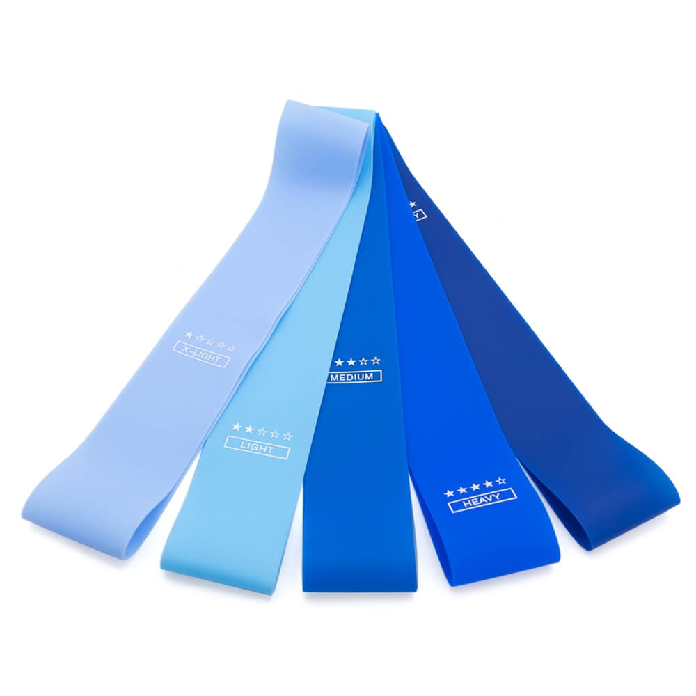 Набор фитнес резинок из натурального латекса. Резинки длиной 30 см и шириной 5 см используются для увеличения нагрузки на мышцы во время занятий спортом. Регулярное их применение позволит значительно повысить эффективность тренировок. Предельная нагрузка для каждой резинки составляет 35 кг.
