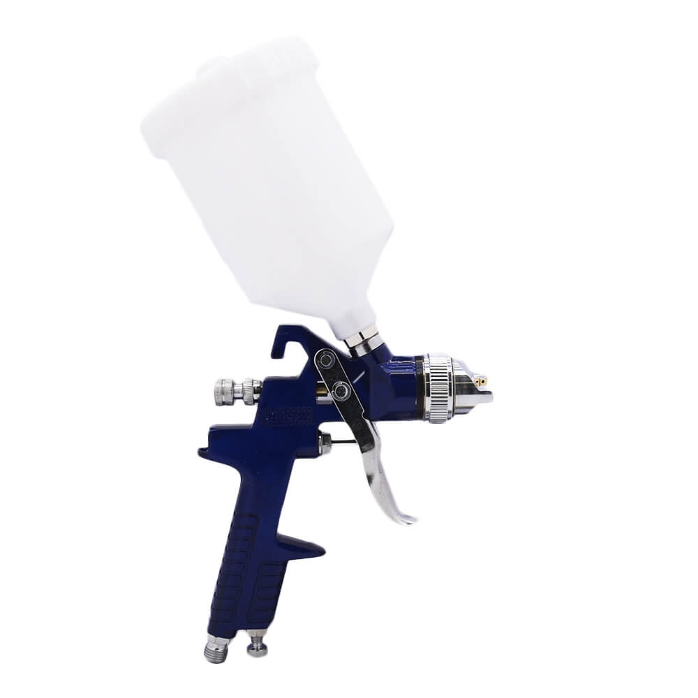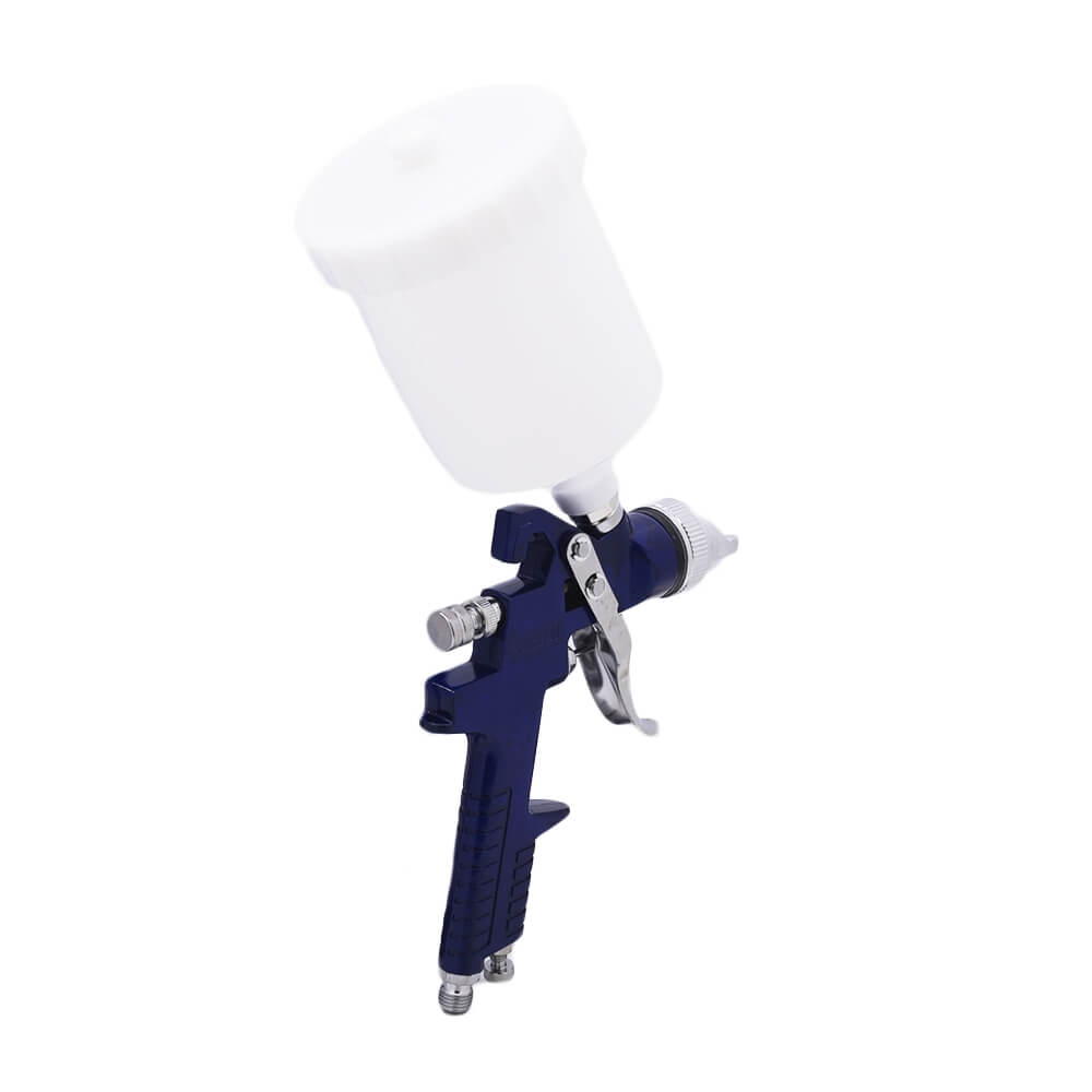 Компактный краскопульт с объем емкости 600 мл. Работает на сжатом воздухе, для подвода которого в рукоятке предусмотрен штуцер диаметром ¼ дюйма. Давление воздуха не должно превышать 3.0 бар. Диаметр сопла составляет 1.7 мм, что обеспечивает качественную и быструю окраску.
